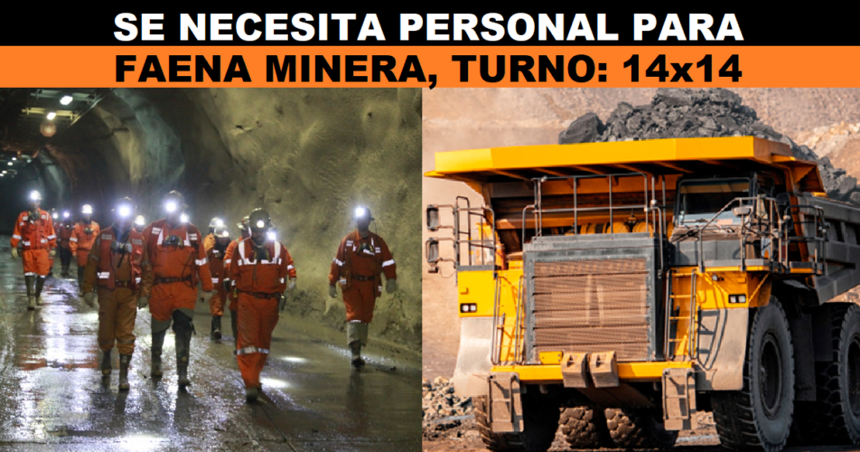 SE NECESITA PERSONAL PARA FAENA MINERA, TURNO: 14x14